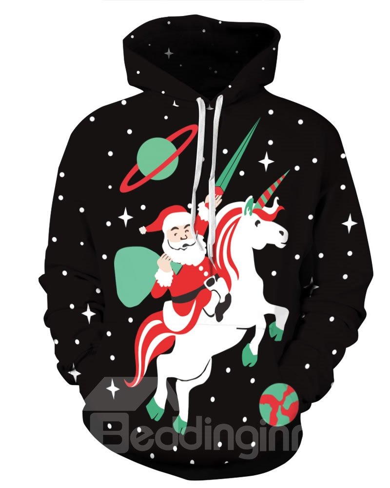 Long Sleeve Santa with Unicorn Christmas Pattern 3D Painted Hoodie