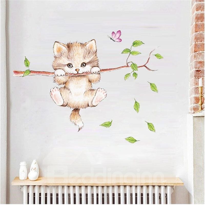 Lovely and Elegant Little Catty on Branch Pattern Bedroom / TV Background Stickers