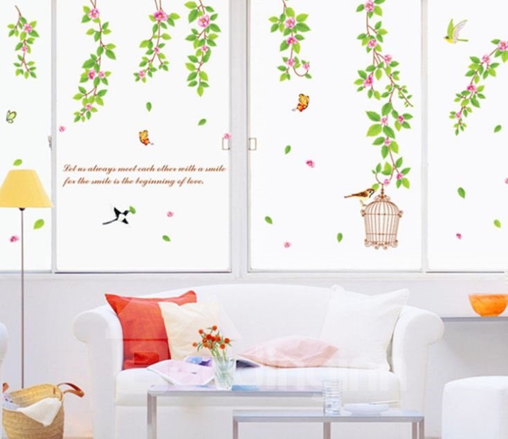 New Arrival Amazing Flowers and Green Leaves Wall Stickers