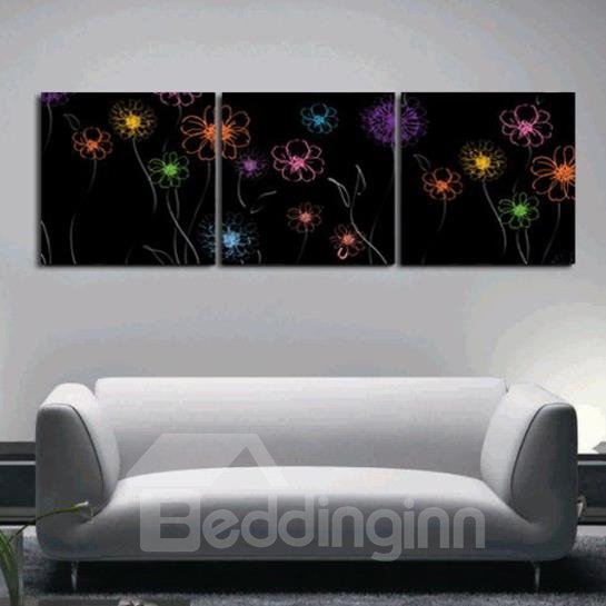 New Arrival Lovely Small Colorful Flowers Print 3-piece Cross Film Wall Art Prints