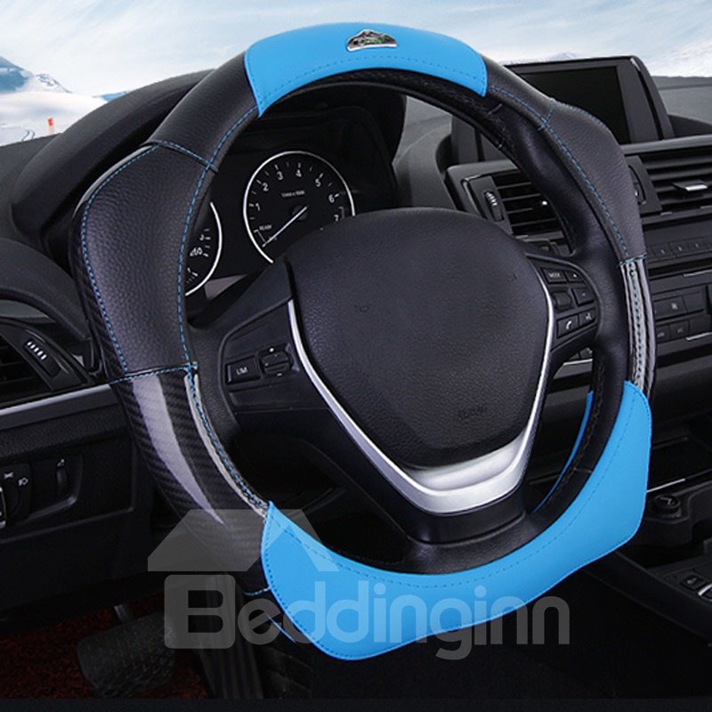 New Fashion 3D Effect Real Leather Material Blue Sport Style Medium Car Steering Wheel Cover