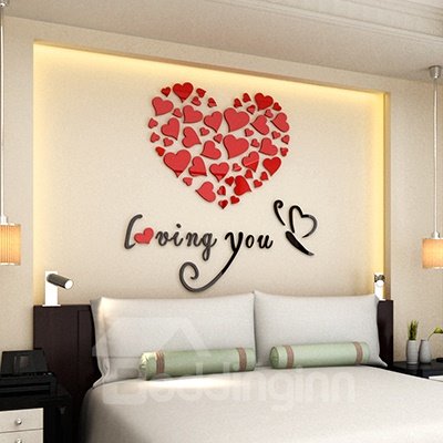 Romantic Heart and Butterfly Loving You Acrylic Mirror 3D Wall Sticker