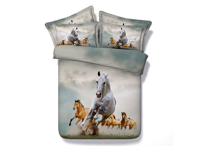 Running Horses Duvet Cover Set Animal Printed Polyester 4-Piece 3D Bedding Set