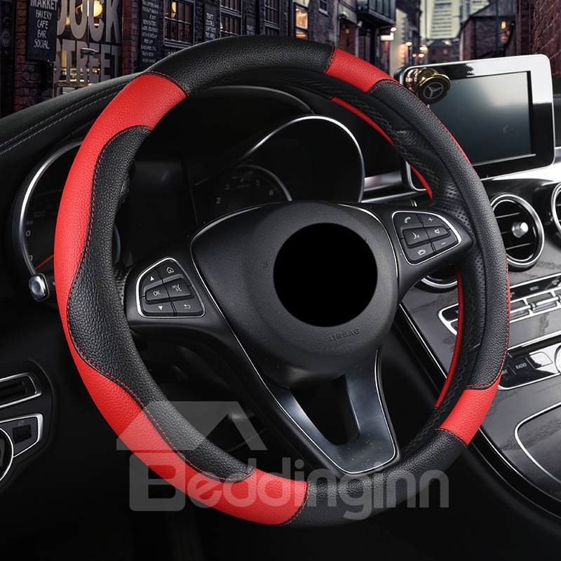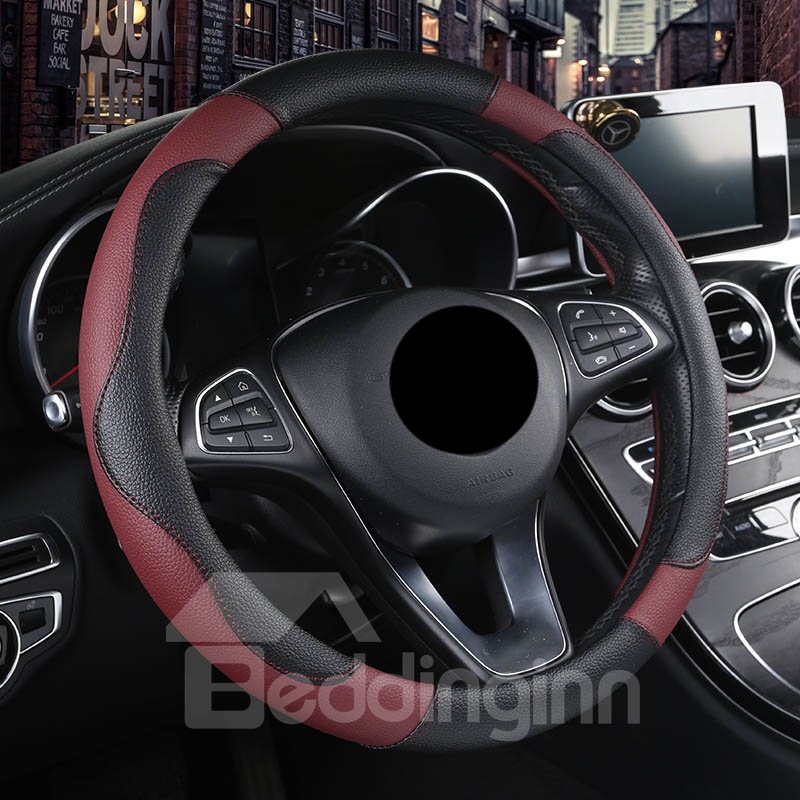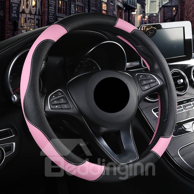 Simple Style High Quality Wear-Resistant Leather Fabric Color Matching Feel Good Don't Slip All Seasons Universal Steering Wheel Covers
