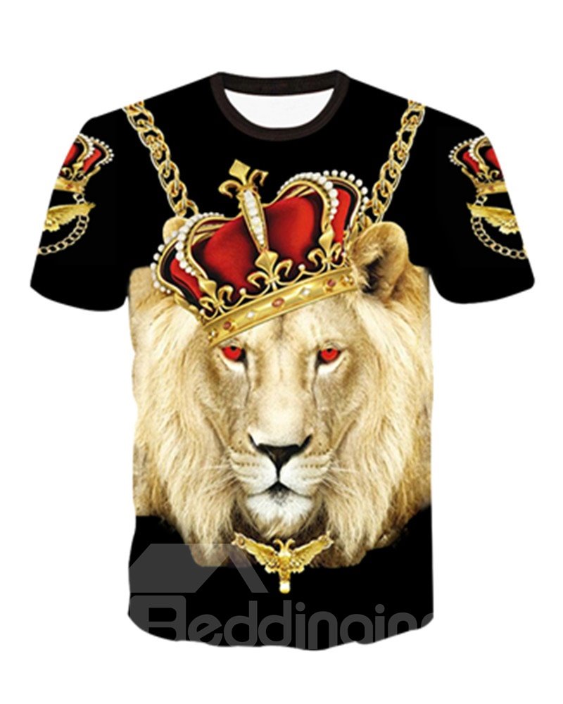 Super Cool Round Neck Lion King Pattern Black 3D Painted T-Shirt
