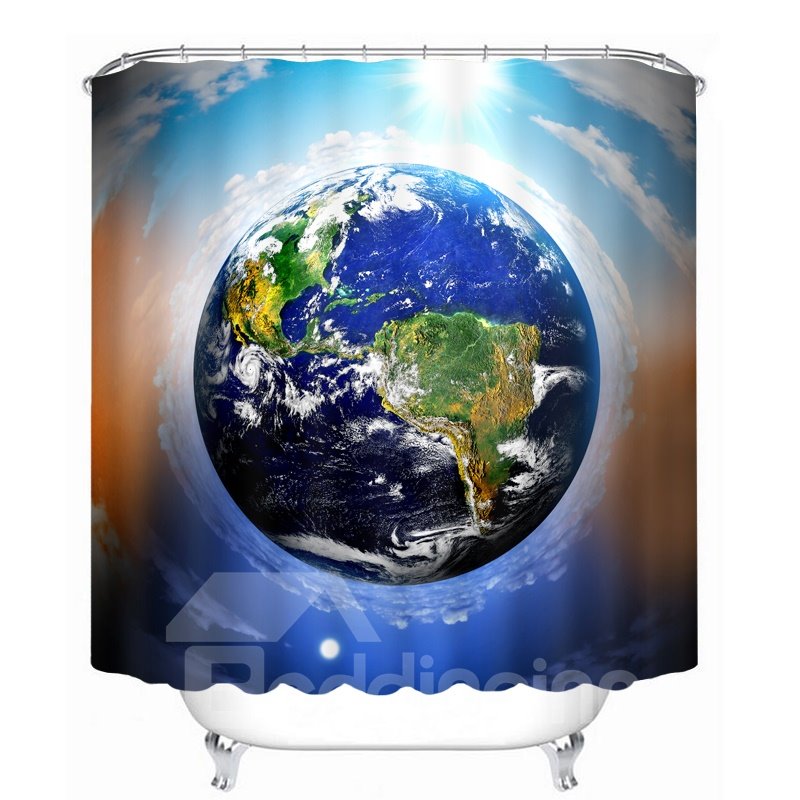 The Earth Overlooking in the Space 3D Printed Bathroom Waterproof Shower Curtain