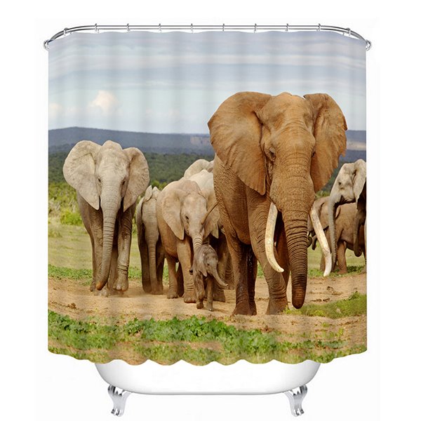 The Elephants Walking at Savannah Printing 3D Shower Curtain