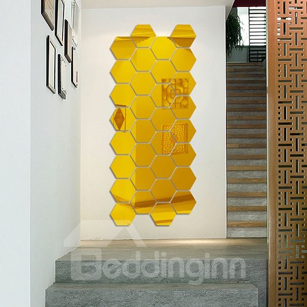 Unique 6-Side Shapes 28-Piece DIY Acrylic Removable Mirror Surface 3D Wall Sticker