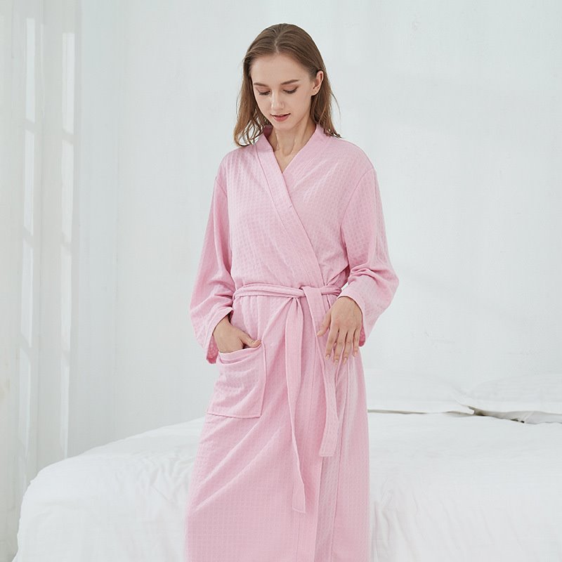 Waffle Robe Pure Color Double Pocket Women's Bathrobe Long Length Home Wear Technology General Bath Robe 3 Color