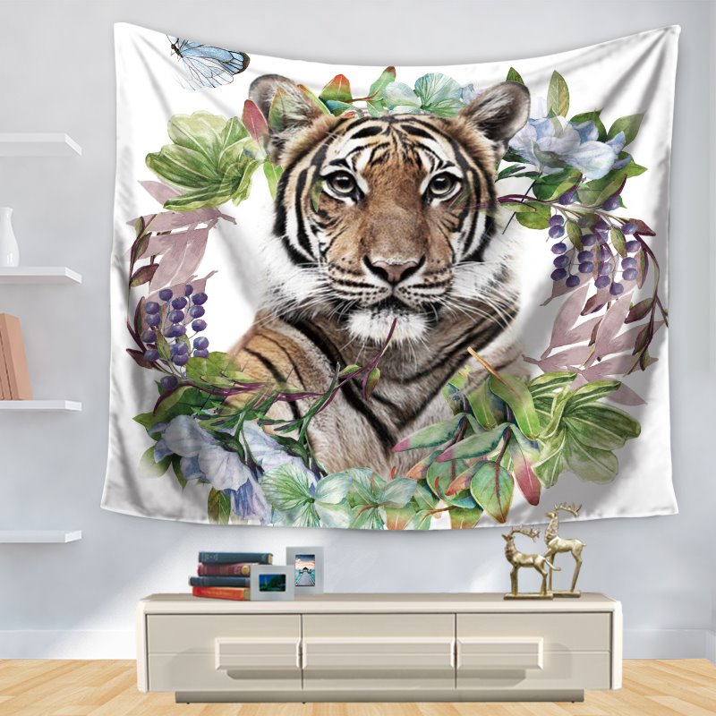 Watercolor Tiger with Flowers and Butterfly Pattern Decorative Hanging Wall Tapestry