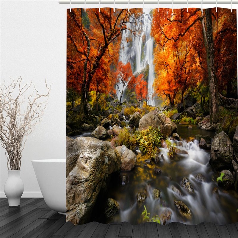 Waterfall and Trees Polyester Waterproof and Eco-friendly 3D Shower Curtain