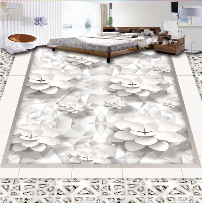 White Flowers Printings European Style Nonslip and Waterproof 3D Floor Murals