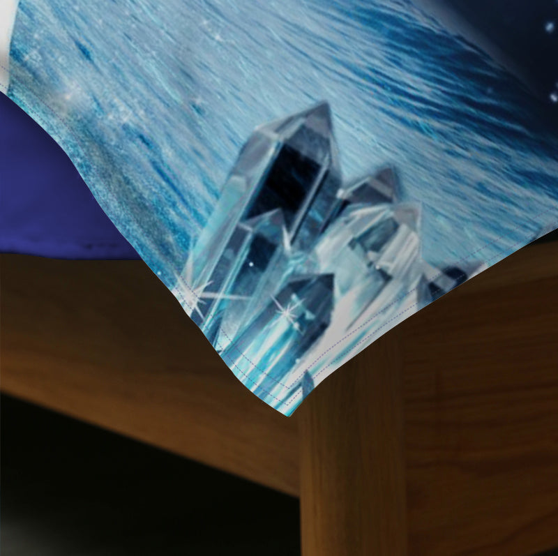 Unicorn Duvet Cover Set, Unicorn in Ice Frozen Realm Printed 4-Piece Bedding Set of Duvet Cover Flat Sheet Pillowcases
