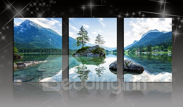 Wonderful Natural Scenery Lake and Mountains 3-Panel Canvas Wall Art Prints